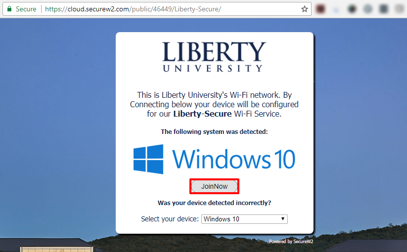 - Go to https://onboard.liberty.edu from a device that is already connected to Liberty-Secure.