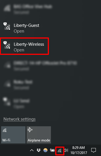 - Switch to "Liberty-Guest" to see if any connections are possible; then, switch back to the "Liberty-Secure" network