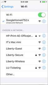 Note: The Liberty-Wireless network is for onboarding purposes and will not connect with outside websites/resources.