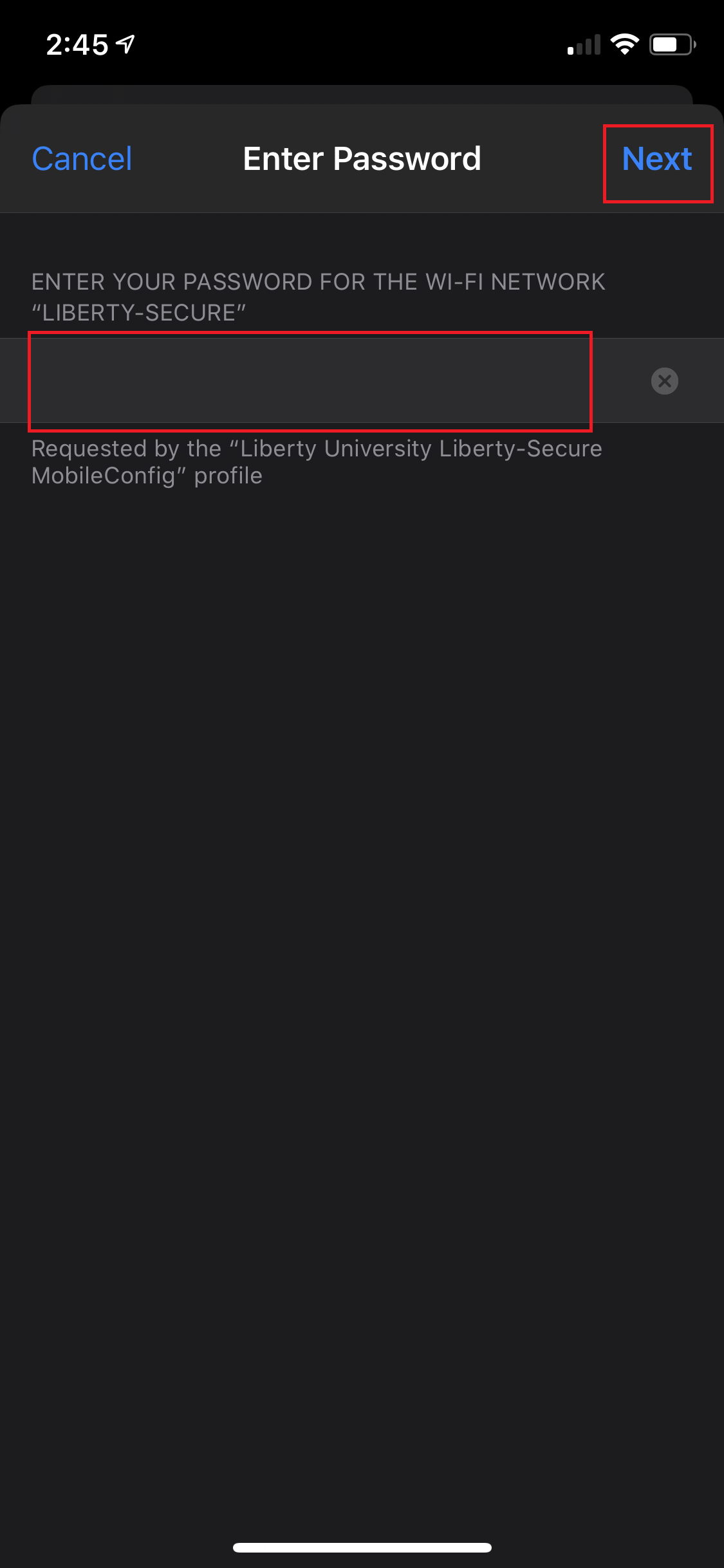 4. Select the Liberty University Liberty-Secure Mobile Profile.