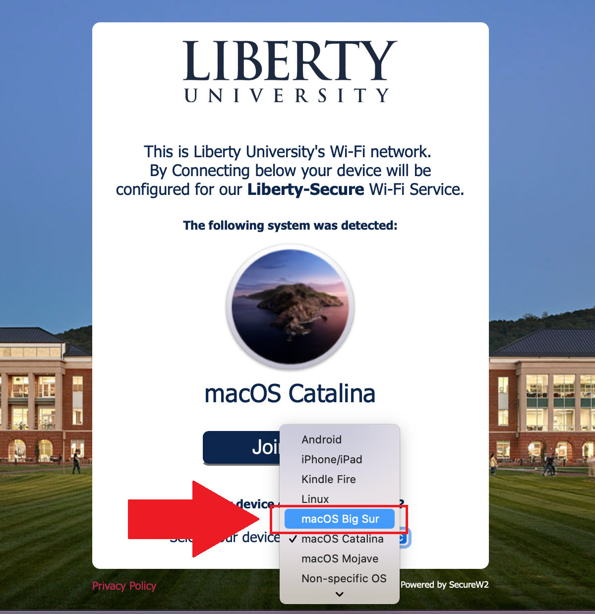Note: If on Big Sur you may need to manually select the operating system as needed.