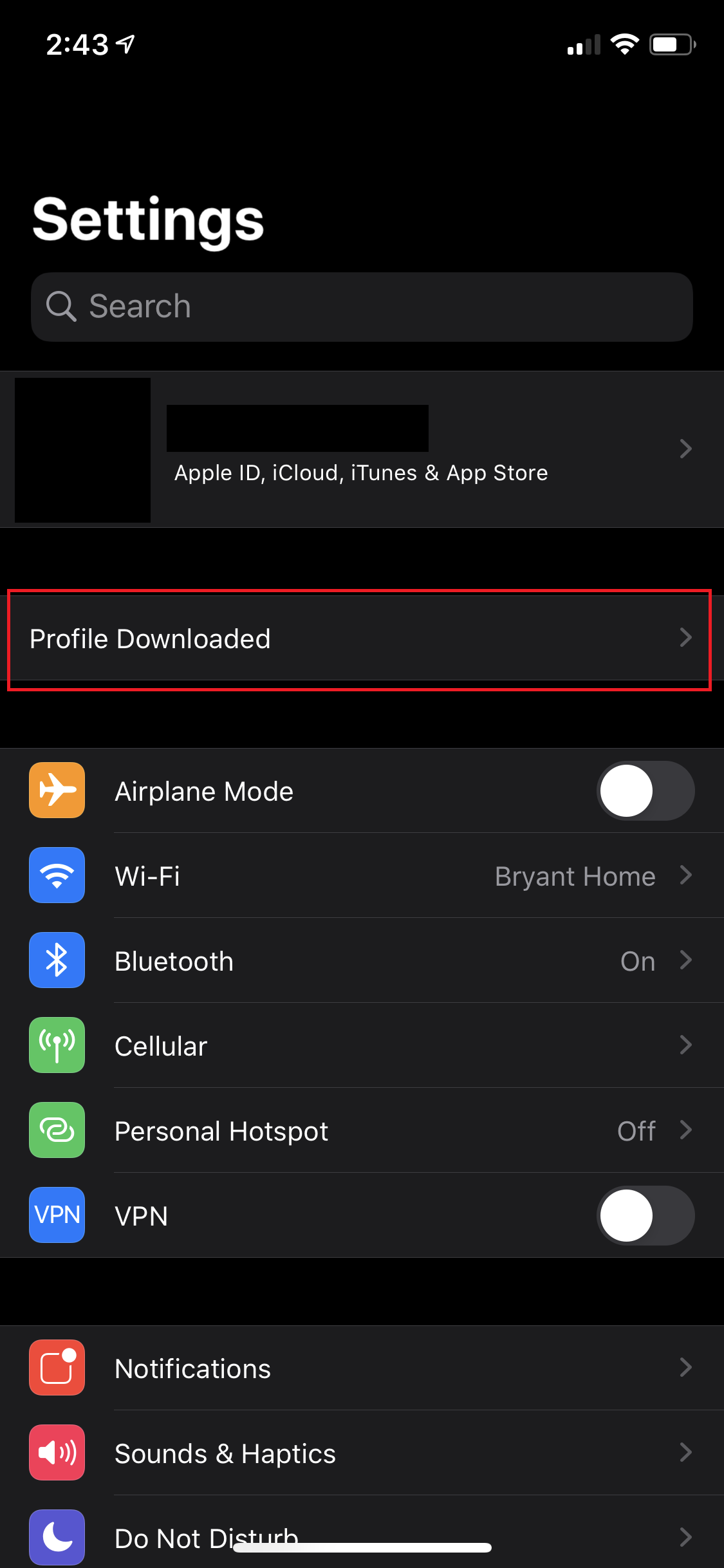 3. Select Profile near the bottom of the General menu