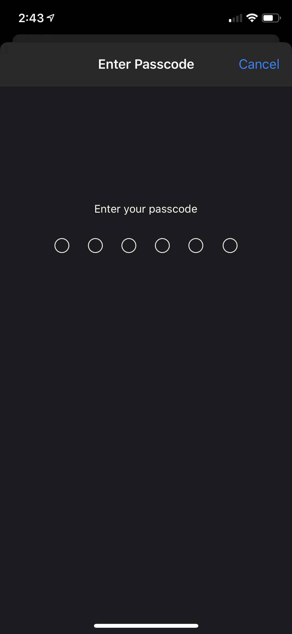 6. A prompt should appear on the screen asking for your passcode if you have one set up.