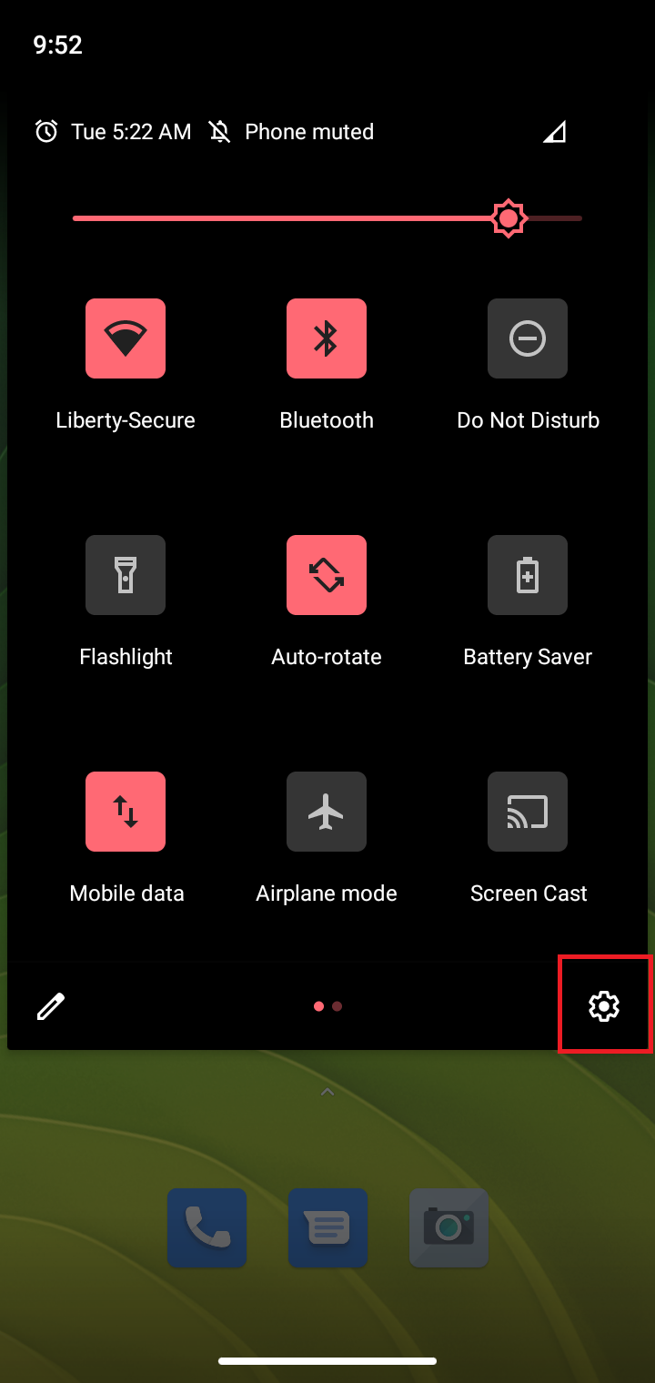 1. Swipe down from the top to open the Control Panel and tap the Gear Icon in the bottom right corner.