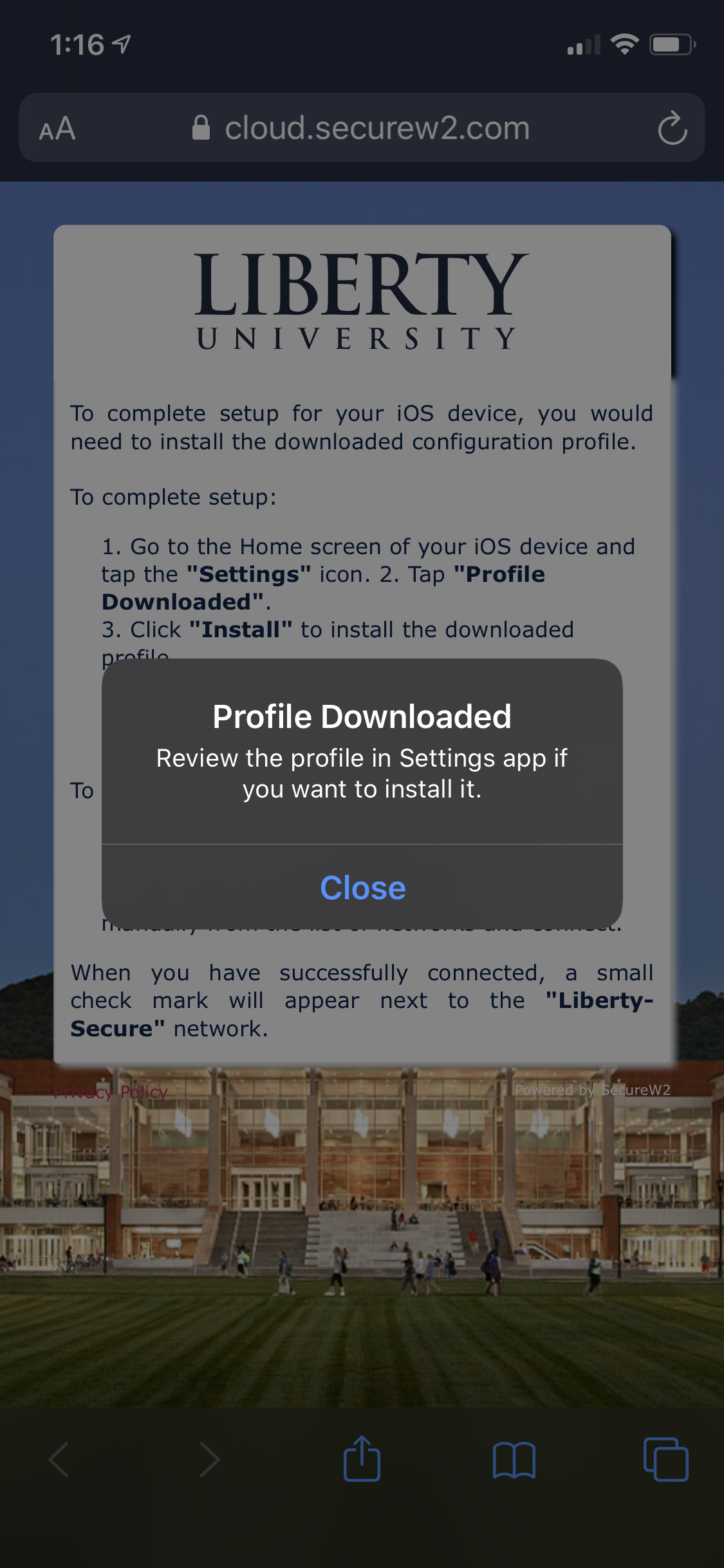 4. Select the Liberty University Liberty-Secure Mobile Profile.