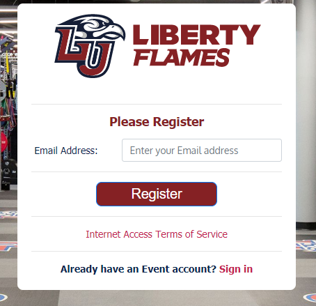 Whenever a user connects to Liberty-Guest they will be asked to register. There is a link at the bottom of the page to sign in if they have an Events Account. The purpose of the guest network account is for people who do not have a Liberty Network Account (LNA) to obtain wireless access. If they attempt to register a Liberty email address they will be redirected to onboard to Liberty-Secure.