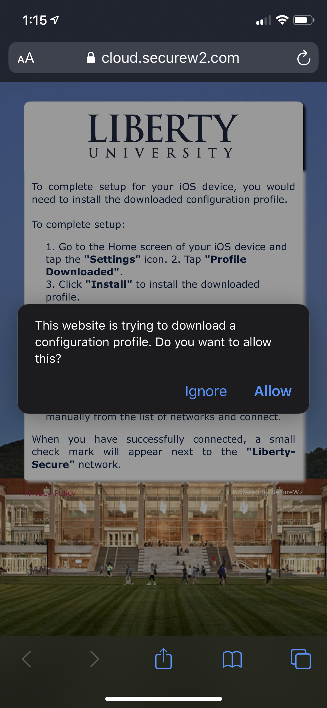 - Select the Liberty University Liberty-Secure Mobile Profile.