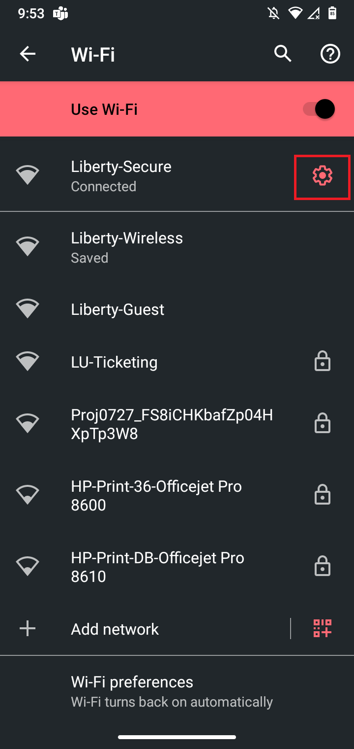 - Tap the Gear icon next to Liberty-Secure.