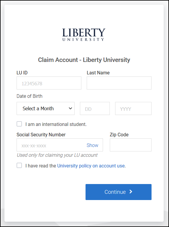 1. Navigate to the following link: Claim your Liberty Account