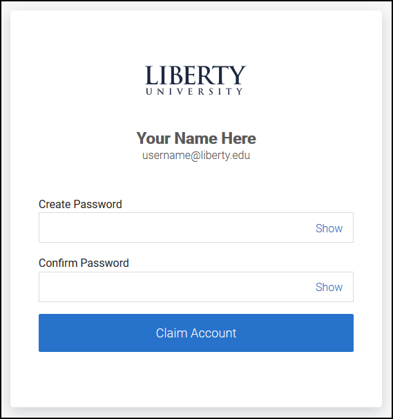 1. Navigate to the following link: Claim your Liberty Account