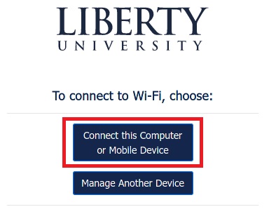 Note: Liberty-Wireless is only used to allow you to go through this process and does not allow access to other websites. - In a web browser, navigate to: https://onboard.liberty.edu.