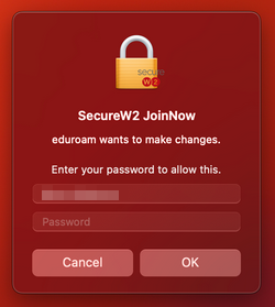 A keychain request for SecureW2 JoinNow will appear. Enter the keychain password and choose Always Allow to complete this step.